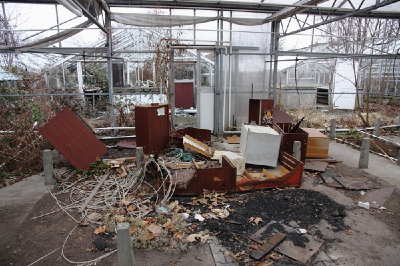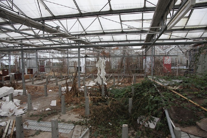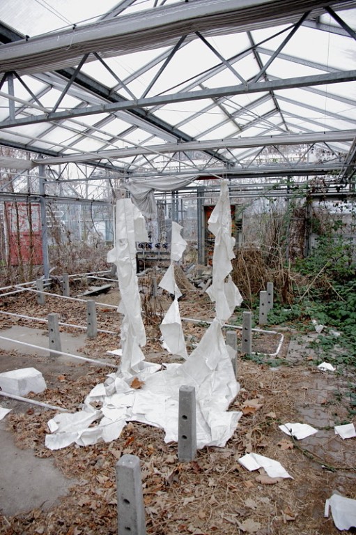 An dieser Stelle als Nachtrag zur Ausstellung 01/01, die in einem Gewächshaus im Bezirk Lichtenberg von Berlin stattfand, aktuelle Bilder die den Zustand im Januar 2011 zeigen. Wie leicht erkennbar ist das Gewächshaus weitgehend geplündert und in der Funktion durch Vandalismus zerstört. Es gibt ja wohl immer wieder ein Interesse an dem Grundstück, meiner Einschätzung nach, ist hier aber nichts mehr zu erreichen, die Belastungen des Grundstückes durch die Zerstörungen und Verfall sind mit vernünftigen Mitteln kaum mehr zu beheben. Im Übrigen befindet sich das Grundstück wohl unter Verwaltung des Liegenschaftsfonds, das macht die Sache auch nicht leichter. Wer die Ausstellung gesehen hat, wird möglicherweise einige Kunstwerke oder Teile der künstlerischen Installationen in ihrem jetzigen Zustand wiedererkennen. Die Anderen müssen mal sehen.