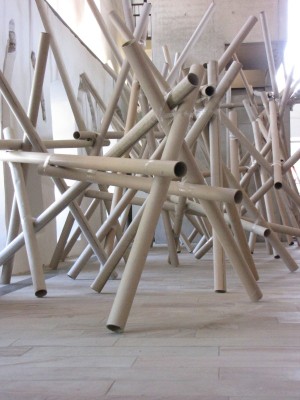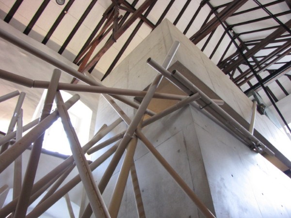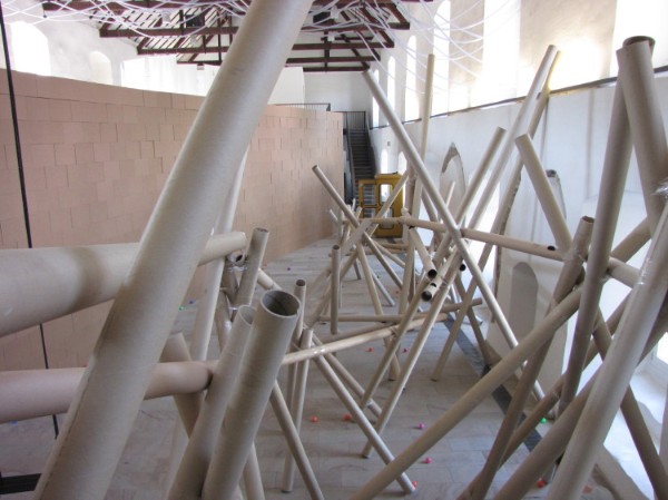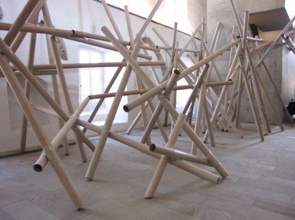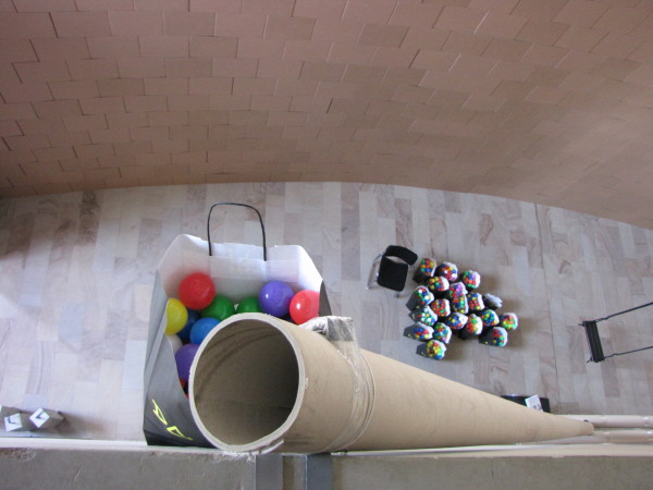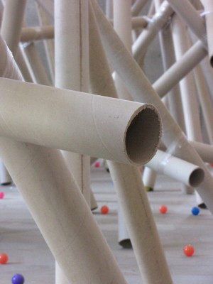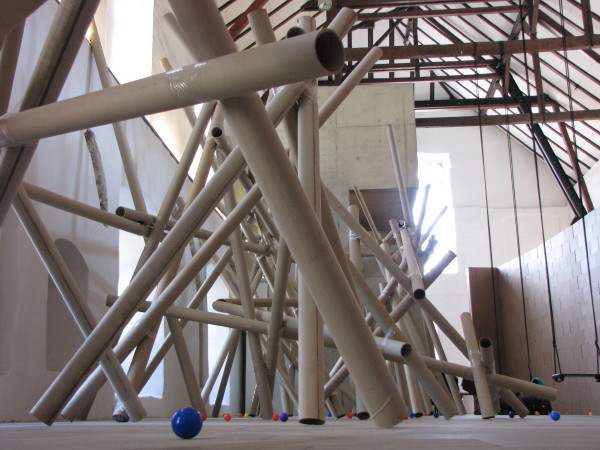 In diesem Jahr, also 2010, waren Anke und ich vom DA Kunsthaus Kloster Gravenhorst eingeladen, eine Arbeit, die wir so ähnlich schon einmal in Braunschweig installiert hatten, anläßlich des 5 jährigen Bestehens des Projektstipendiumsprogramms des DA, zu erstellen. Es handelt sich dabei um eine Kugelbahn, die sowohl den Zuschauern als auch uns viel Spaß bereitet hat. Im Folgenden ein paar Bilder dazu, ein Soundfile läuft im Hintergrund dieser Seite , dort kann man die Bahn auch hören und ein pdf, dass den flyer zur Ausstellung zeigt. Anmerkung: Streng genommen ist diese Arbeit kein Projekt von *poliflur*, da aber Anke und ich die Beteiligten waren, und auch sonst alles wie immer war, kann man es meiner Meinung nach auch unter diesem Menüpunkt verbuchen.